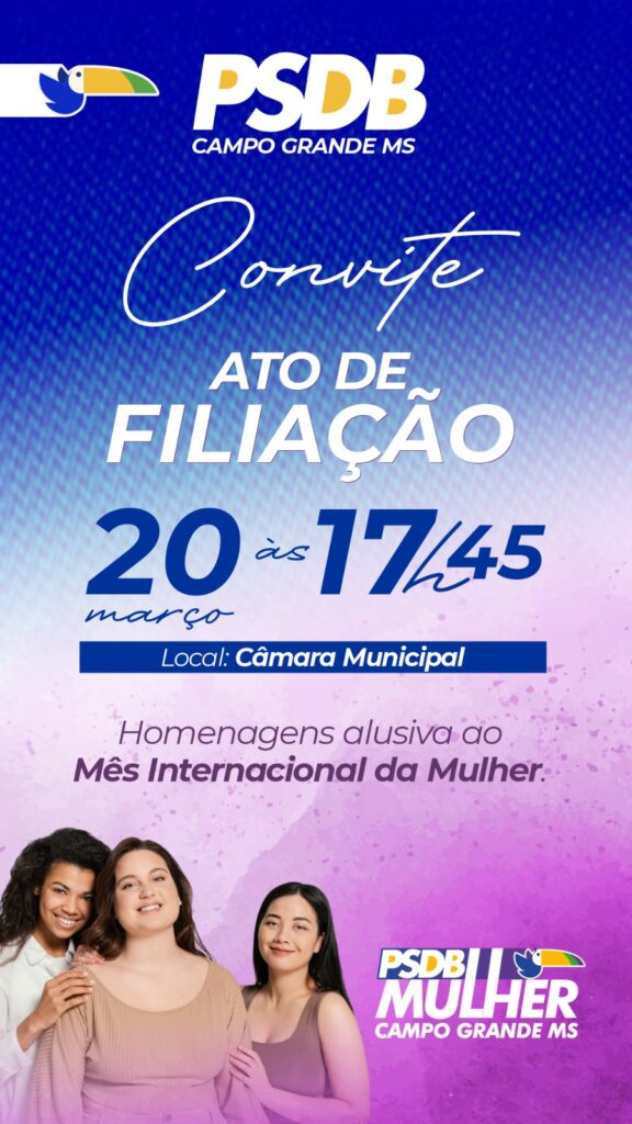 O PSDB de Campo Grande realiza nesta sexta-feira (20), às 17h45, um ato de filiação partidária no plenário da Câmara Municipal, na Avenida Ricardo Brandão, 1.600, no Jatiuca Park. O evento é aberto a filiados, simpatizantes e qualquer pessoa que queira integrar o projeto social-democrata na capital sul-mato-grossense. Mais do que uma cerimônia de adesão, o ato acontece dentro da janela partidária e marca o início de uma fase de reorganização do partido rumo às eleições de 2026, quando o PSDB apoiará a reeleição do governador Eduardo Riedel e a pré-candidatura de Reinaldo Azambuja ao Senado Federal.